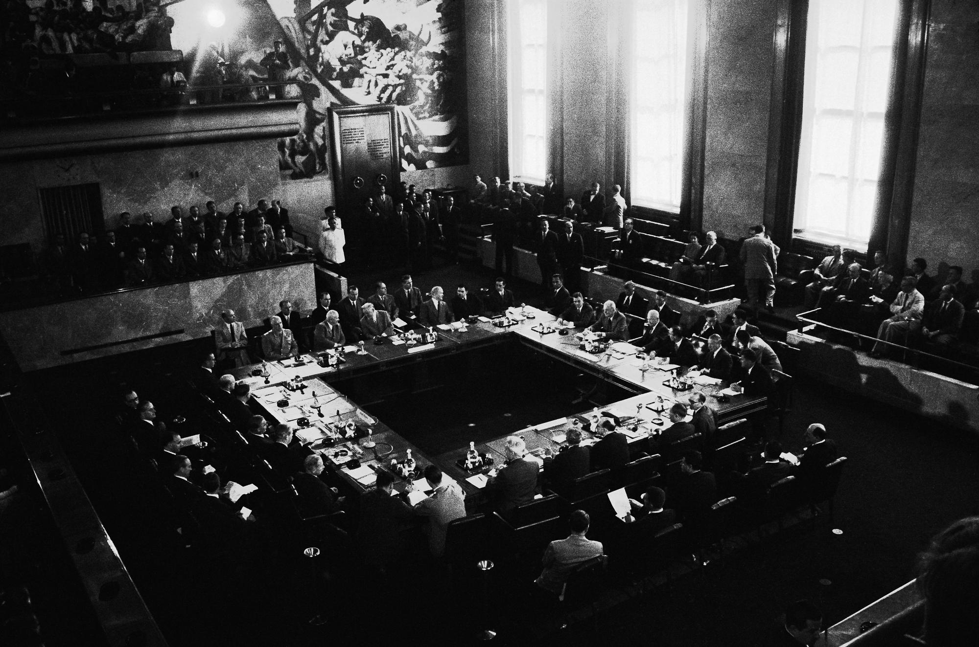 Die vier Genfer Konventionen werden angenommen. Diese internationalen Abkommen sind eine essentielle Komponente des internationalen humanitären Völkerrechts und schützen alle Personen, die nicht direkt an Feindseligkeiten teilnehmen (Zivilisten, Pflegepersonal, Helfer usw.) sowie alle Personen, die nicht mehr an Feindseligkeiten teilnehmen, u. a. Verwundete, Kranke, Schiffbrüchige und Kriegsgefangene.