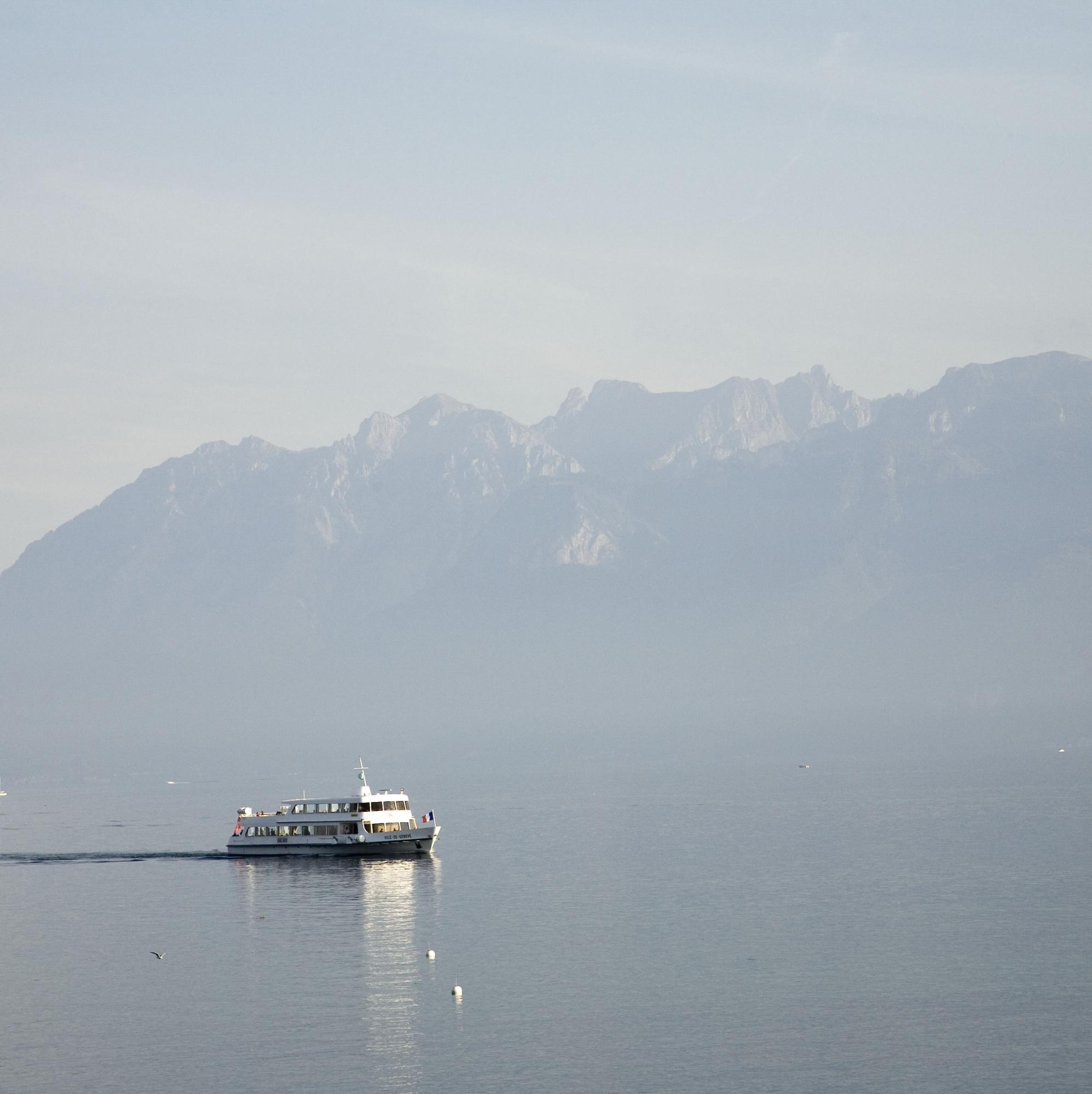 Le partenaire Magnum Peter Marlow a pris cette photo d'un bateau observé depuis Lausanne, Suisse, naviguant entre la Suisse et la France sur le lac Léman en 2006.